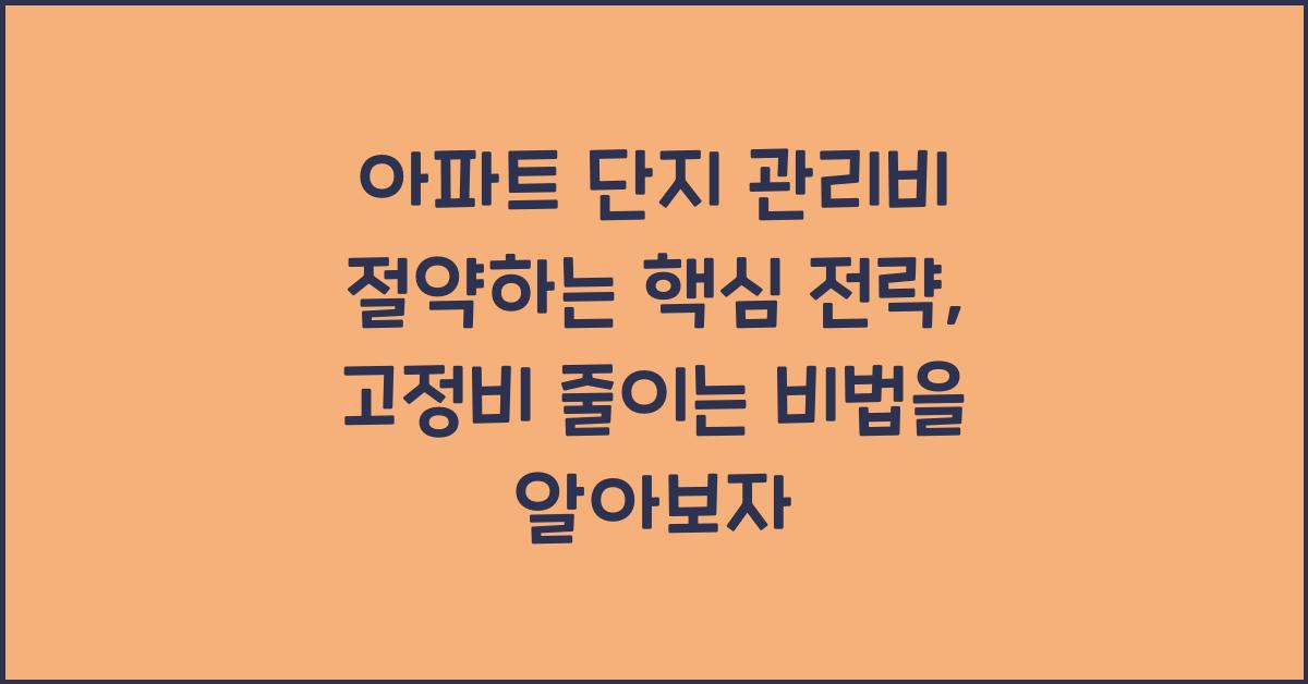 많은 아파트 주민들이 공통적으로 느끼는 고민은 바로 관리비입니다. 저 또한 한때 매달 관리비에 눈물을 흘린 적이 있는데요. 이렇게 아깝고 소중한 돈이 나가고 있다는 사실에 너무나도 불안했죠. 그 과정에서 알게 된 아파트 단지 관리비 절약하는 핵심 전략이 여러 가지 있으니, 그 경험을 여러분과 나누고자 합니다. 이 글을 통해 작은 변화로 어떻게 고정비를 줄일 수 있을지 궁금증을 가지시길 바랍니다.