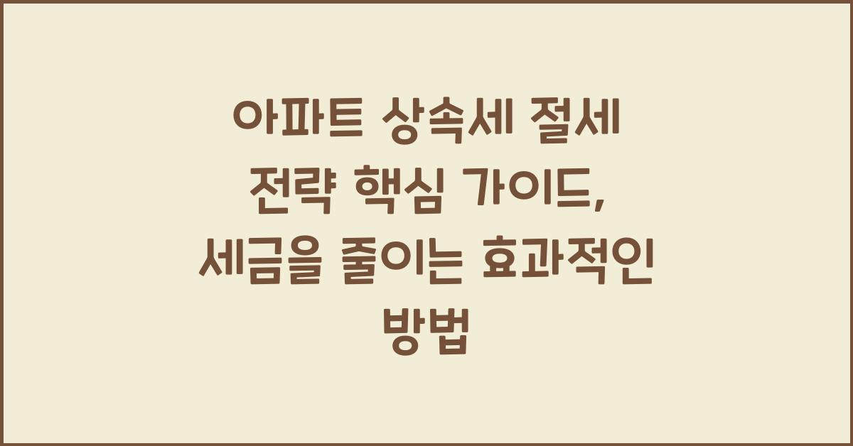 상속세는 고인이 남긴 자산을 상속받는 과정에서 부과되는 세금으로, 상속받는 자산의 가치에 따라 그 세금이 달라집니다. 특히 아파트와 같은 고가 자산은 그 세금이 만만치 않기 때문에 미리 준비하는 것이 중요합니다.